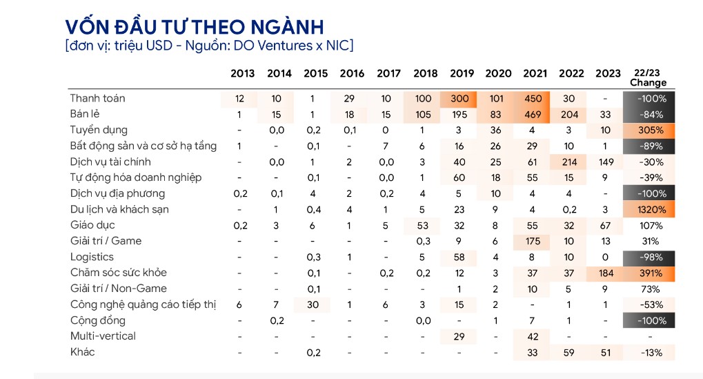 | Tổng vốn đầu tư theo ngành ở Việt Nam. Ảnh: TopDev |