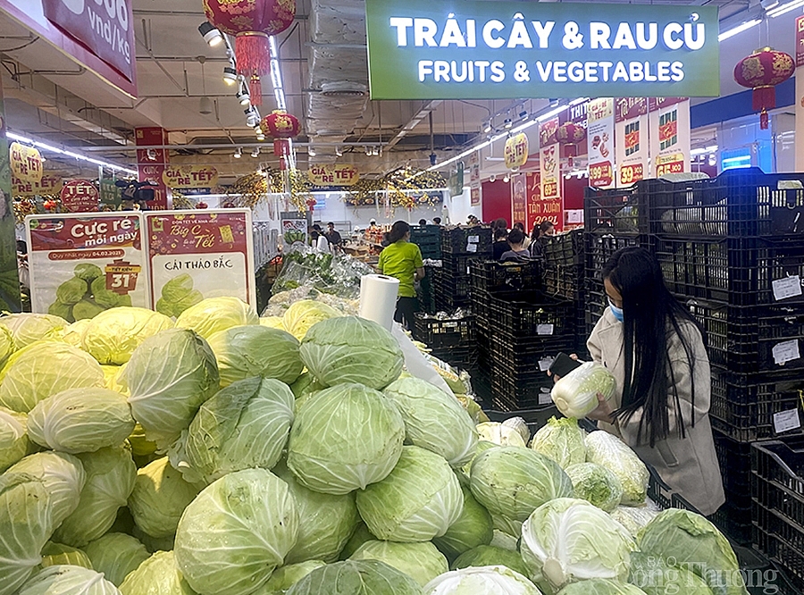 Nhiều siêu thị chuẩn bị nguồn hàng hóa, nhất là rau xanh phục vụ người dân sau dịp Tết. |