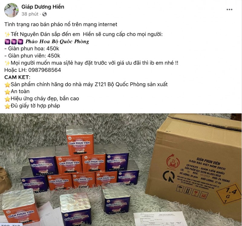 | Tài khoản rao bán pháo hoa trên mạng xã hội cao hơn so với giá niêm yết. (Ảnh chụp màn hình) |