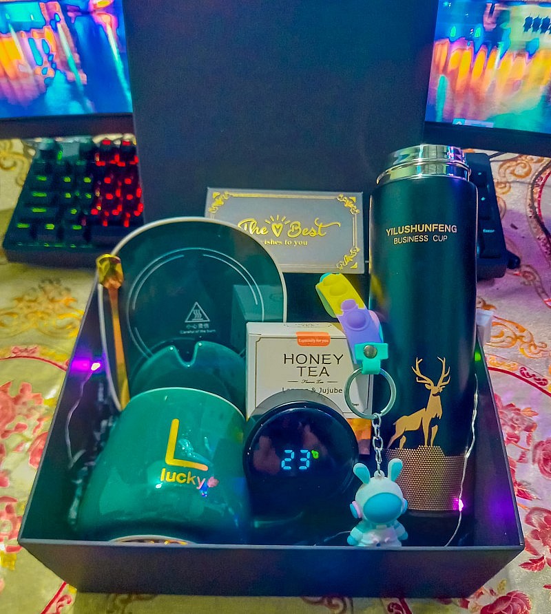 | Set quà gồm cốc, bình giữ nhiệt và trà là một trong những món quà sức khỏe ý nghĩa cho nửa kia. |