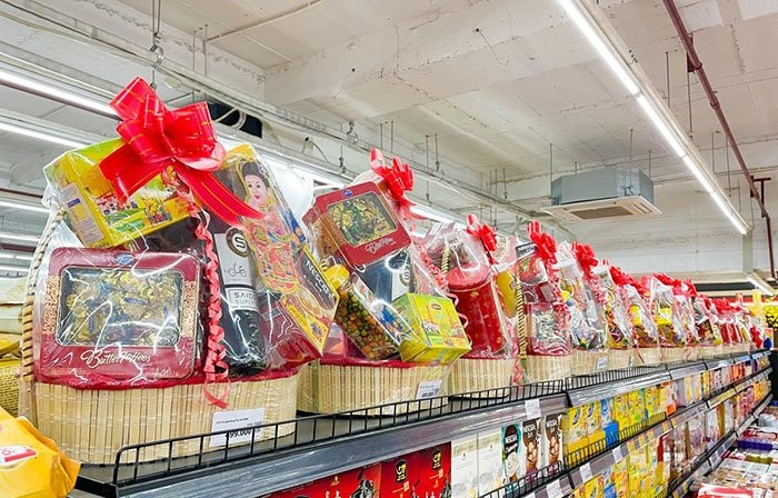 | Giỏ quà Tết được "lên kệ" sớm từ cuối tháng 11 Âm lịch |