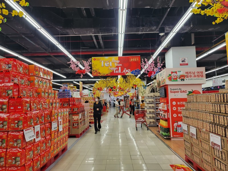 Tại siêu thị MM Mega Market, dịp Tết Nguyên đán này, siêu thị cung cấp khoảng 16 loại giỏ quà Tết cho khách hàng với giá dao động từ 300.000 đồng đến 2 triệu đồng/giỏ. Tương tự, hệ thống siêu thị WinMart cũng đã đưa ra thị trường nhiều mẫu giỏ quà Tết mang nội dung Như Ý-Cát Tường - Phú Quý; An Khang-Đại Cát… giá từ 299.000-699.000 đồng/giỏ.