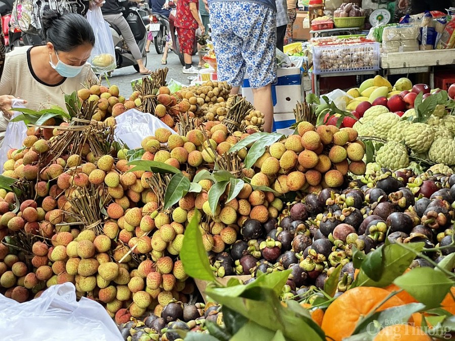 | Trái vải và măng cụt được người dân mua nhiều trong dịp Tết Đoan ngọ |