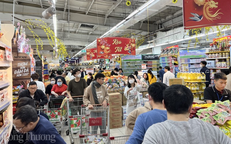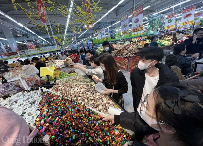 Càng những ngày cận Tết Nguyên đán Giáp Thìn, ghi nhận tại Hà Nội, người dân, du khách đến các siêu thị, trung tâm thương mại trên địa bàn tăng dần, không khí mua, bán tấp nập, nhộn nhịp hơn so với ngày thường. Các chủng loại mặt hàng phục vụ Tết như: Mứt, bánh kẹo, trái cây sấy, giỏ quà Tết… được người tiêu dùng quan tâm và chọn mua nhiều hơn.