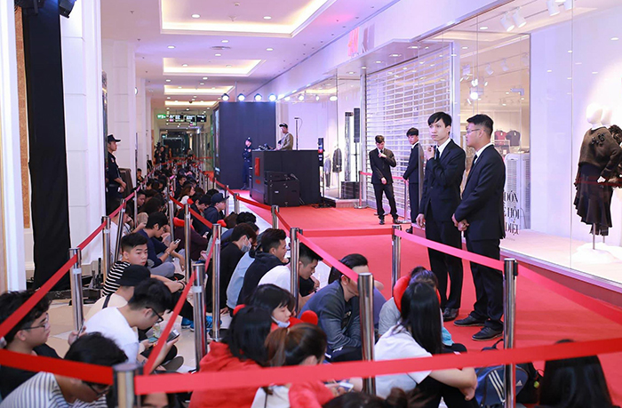| Dòng người xếp hàng dài chờ H&M khai trương cửa hàng đầu tiên tại Hà Nội |