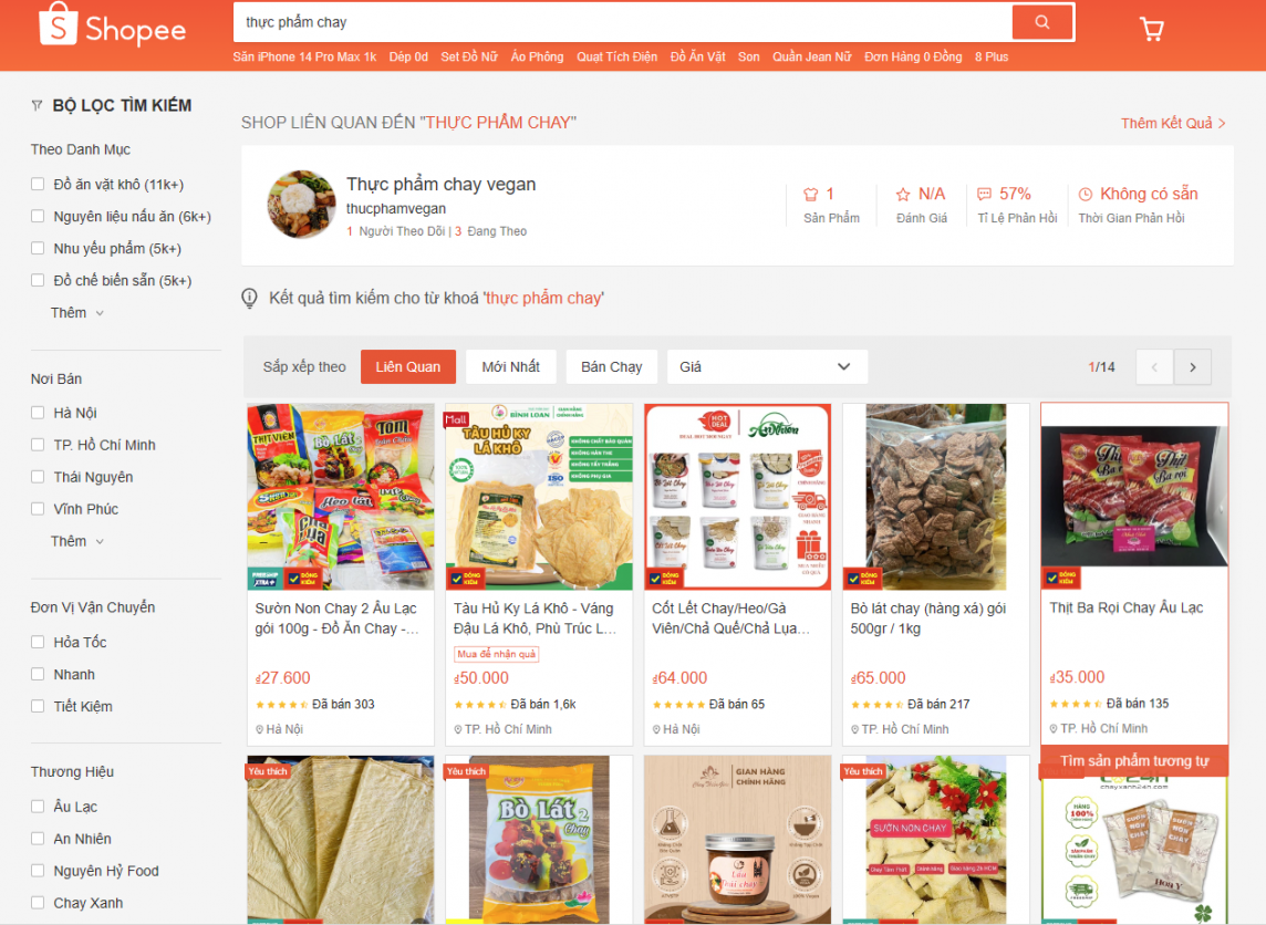 | Trang thương mại điện tử Shopee cũng bày bán đa dạng các sản phẩm chay |