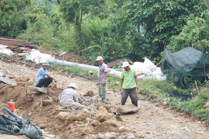 | Công nhân thi công dự án đang hoàn thành những phần việc cuối cùng của dự án |