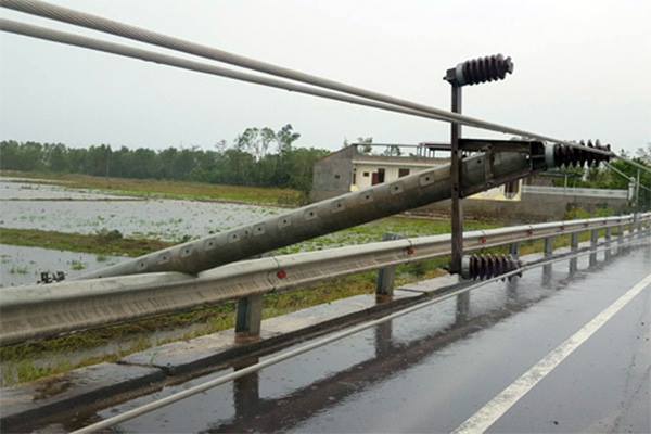 | Cột điện ngã đổ sau cơn bão số 10, tại Quảng Bình |