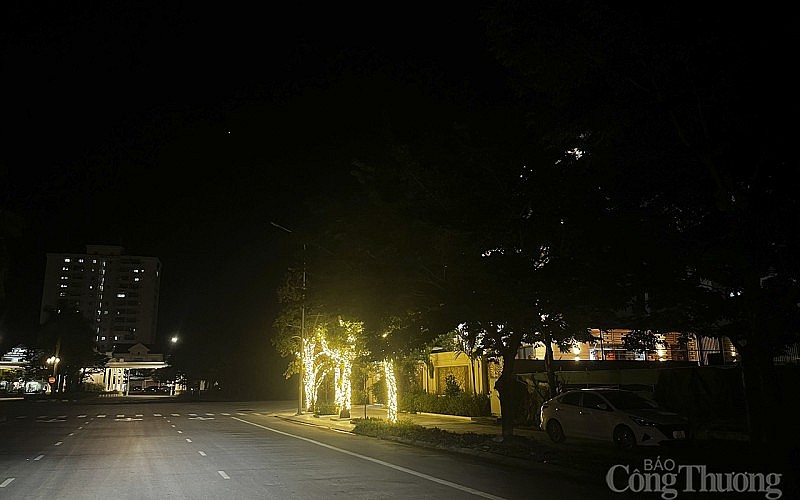| Ðèn quảng cáo bố trí quá nhiều. Ở ngôi nhà bên trong khu đô thị mới Vinh Tân (TP.Vinh), đèn trang trí treo trên cây, số lượng đèn nhiều, sáng rực cả khoảng không gian, gây lãng phí điện. |
