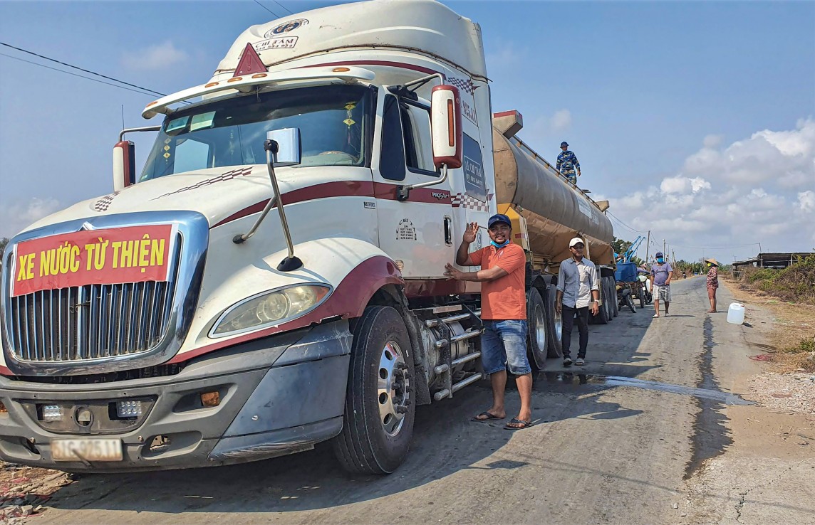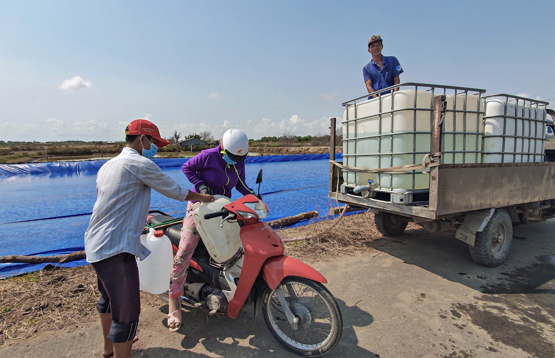 | Nhiều cá nhân, doanh nghiệp tham gia hỗ trợ nước ngọt cho người dân khu vực ven biển các tỉnh Bến Tre, Tiền Giang, Cà Mau. |