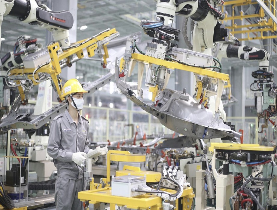 | Dây chuyền lắp ráp ô tô tại nhà máy của Công ty cổ phần Ô tô Trường Hải (Thaco) trong Khu kinh tế mở Chu Lai (huyện Núi Thành, tỉnh Quảng Nam). Ảnh: MOIT |
