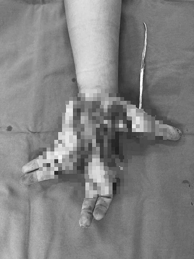 TS.BS Ngô Thái Hưng, Khoa Chấn thương chi trên và vi phẫu thuật, Viện Chấn thương chỉnh hình cho biết, bệnh nhân bị dập nát da gan tay và cơ ngón cái, hở lộ khối xương trụ cốt, gãy hở các xương bàn. Đầu các ngón tay nuôi dưỡng kém, dập nát cả 5 ngón…