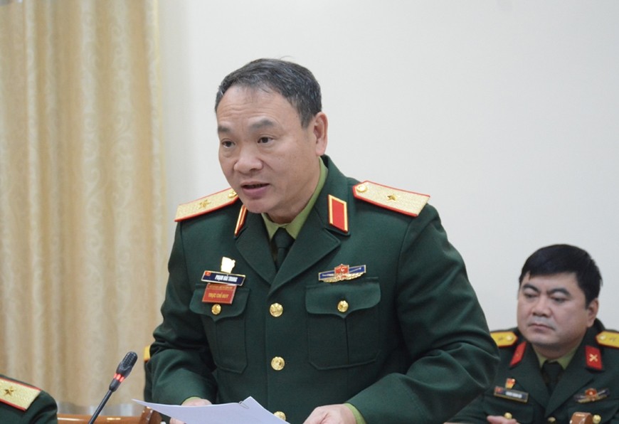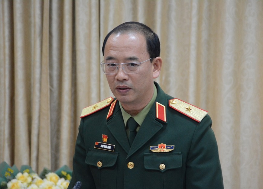 | Thiếu tướng Đinh Quốc Hùng phát biểu tại Hội nghị. Ảnh: QĐND |