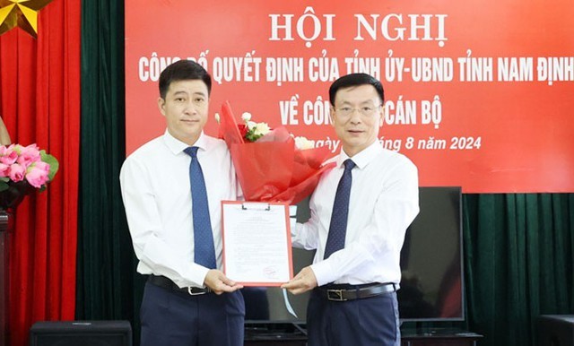Chủ tịch UBND tỉnh Nam Định Phạm Đình Nghị trao quyết định cho đồng chí Phạm Thanh Bình. Ảnh: Chinhphu.vn |