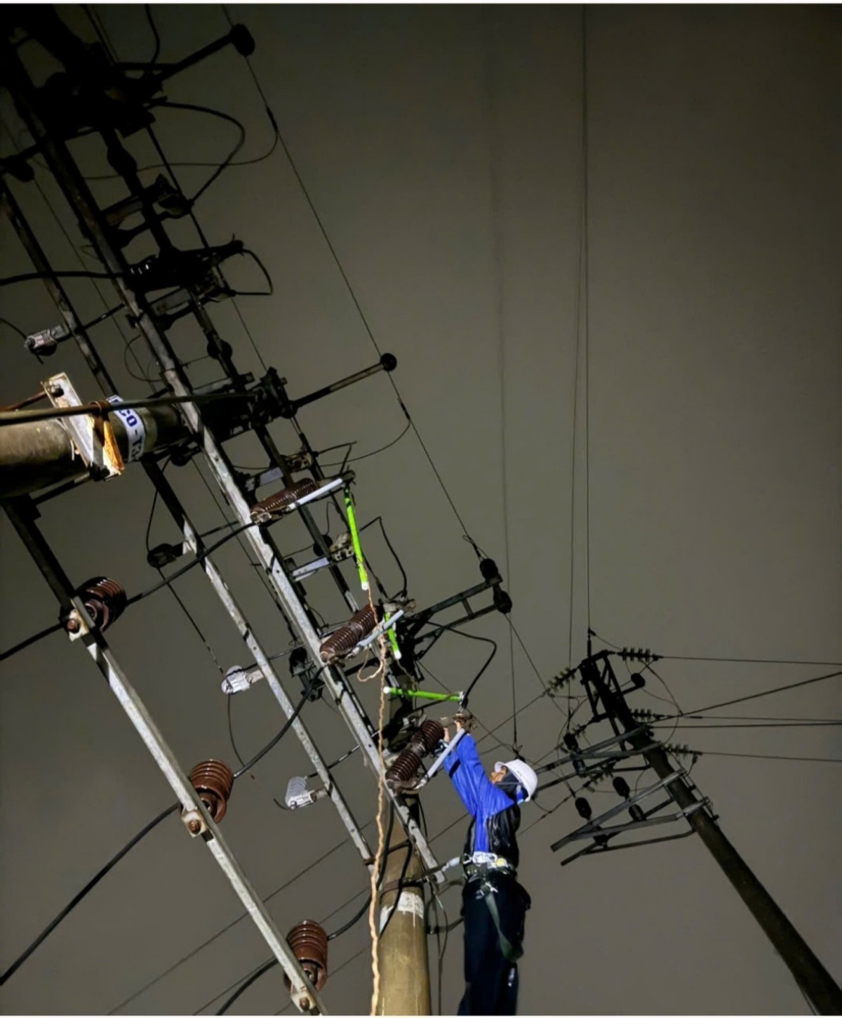 | Những người lính áo cam đã không quản mưa bão, đêm tối nhằm đảm bảo sớm cấp điện trở lại cho nhân dân |
