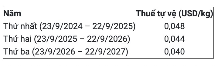 Mức thuế tự vệ và thời gian áp dụng, cụ thể: