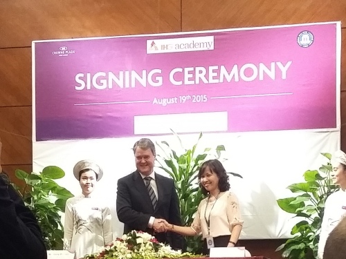 Được biết, thời gian qua, Crowne Plaza West Ha Noi đã tạo điều kiện cho nhiều lượt sinh viên các trường đại học Việt Nam có cơ hội tiếp cận với thực tế công việc trong ngành khách sạn qua các chuyến tham quan hay cơ hội thực tập và làm việc tại khách sạn. Ông Barry Pit man - Tổng Giám đốc Khách sạn Crowne Plaza West Ha Noi đánh giá cao năng lực của các bạn sinh viên Việt Nam. Ông hy vọng sự hợp tác này sẽ giúp cho nhiều sinh viên ngành dịch vụ của Việt Nam có cơ hội phát triển trở thành nguồn nhân lực chất lượng cao, đáp ứng được nhu cầu của xã hội.