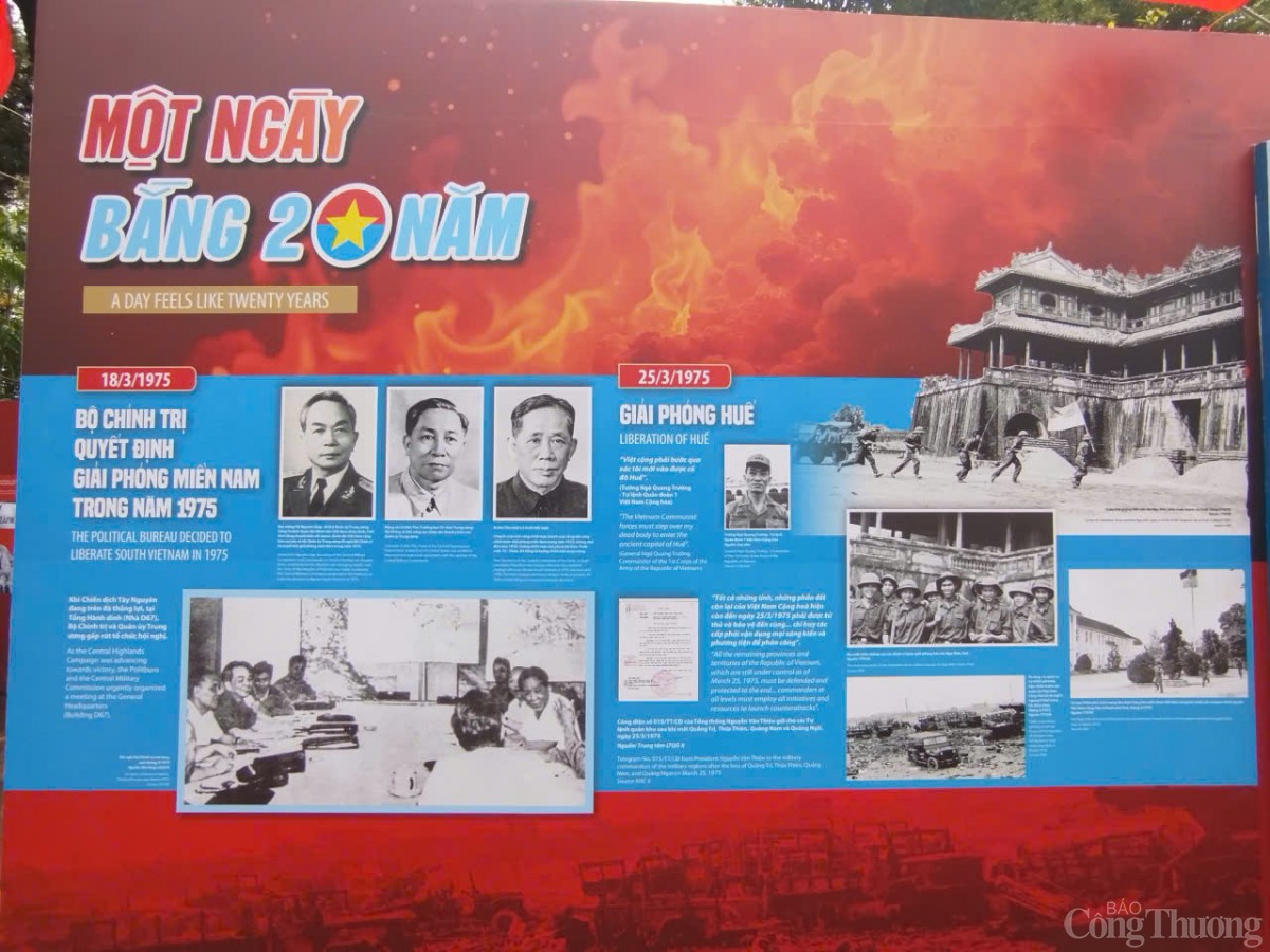 Ở chủ đề “Một ngày bằng 20 năm” đã khắc họa khí thế thần tốc, táo bạo của toàn quân và dân ta qua các chiến thắng tại Phước Long, Tây Nguyên, Huế, Đà Nẵng, những chiến công mang tính bước ngoặt mở đường cho chiến dịch cuối cùng. |