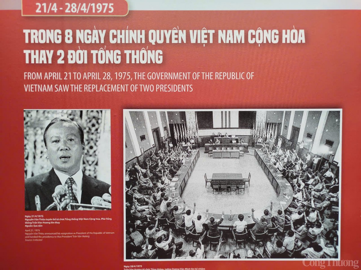 | Ngày 21/4/1975, Nguyễn Văn Thiệu tuyên bố từ chức Tổng thống Việt Nam Cộng hòa và Phó Tổng thống Trần Văn Hương lên thay. |
