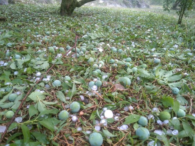 | Mận rụng kín gốc cây do mưa đá |