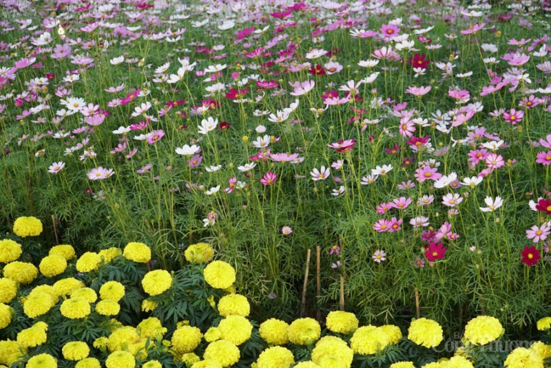 | Hàng chục loại hoa rực rỡ sắc màu đã được lựa chọn để phối cảnh tạo lên đường hoa Xuân Đà Nẵng như cánh bướm, cúc mâm xôi, cúc vạn thọ, cúc đại đóa, cẩm tú cầu, đỗ quyên, dạ yến thảo… |