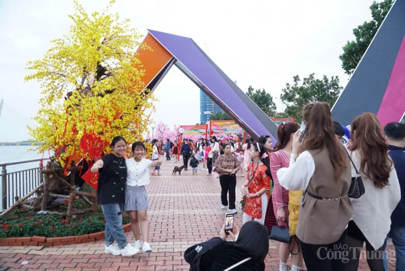 Hàng nghìn người dân và du khách thành phố Đà Nẵng tranh thủ check in đường hoa Xuân Đà Nẵng mừng Tết Nguyên đán Quý Mão 2023 trong ngày thời tiết đẹp.
