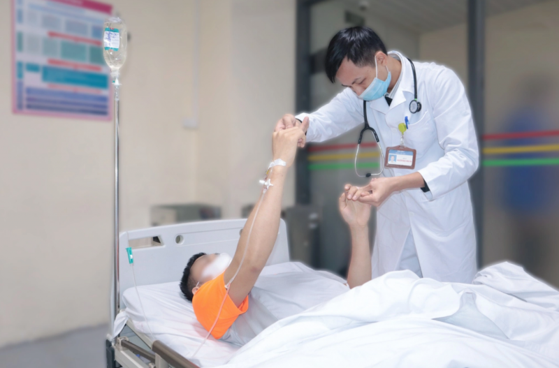 Nam bệnh nhân 34 tuổi điều trị đột quỵ tại Bệnh viện E. Ảnh: Bệnh viện cung cấp