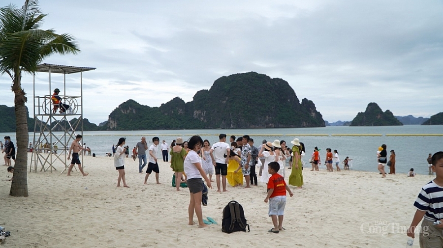 | Tuy nhiên vào hôm nay (1/5), tại Hạ Long thời tiết se lạnh, gió giật khiến lượng khách ra các bãi tắm ít hơn. |