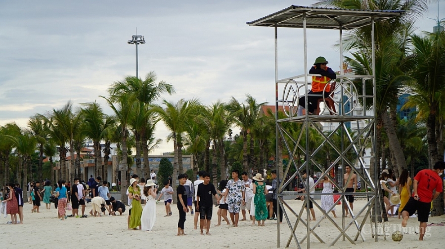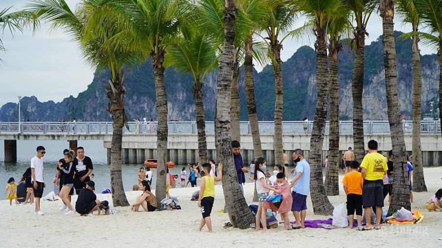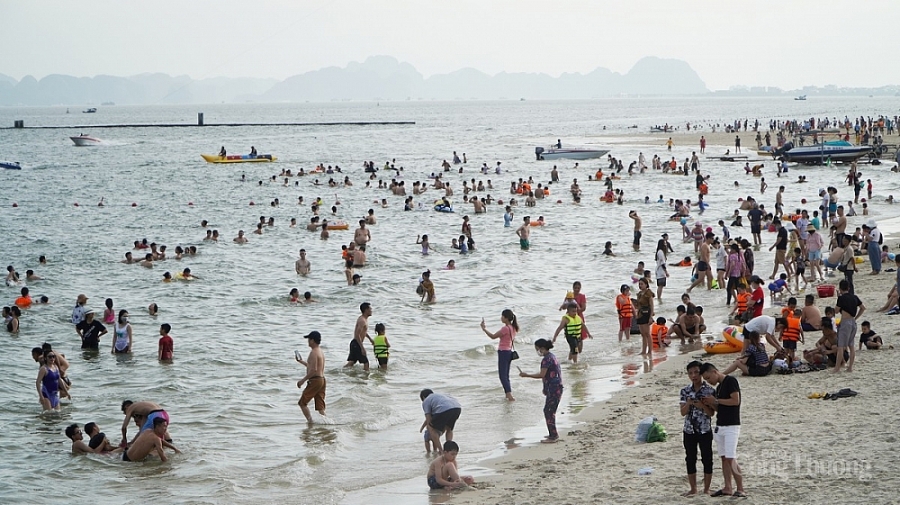 | Trong ngày 30/4, thời tiết oi bức nên rất đông du khách đổ về các bãi biển ở Hạ Long (Quảng Ninh) |