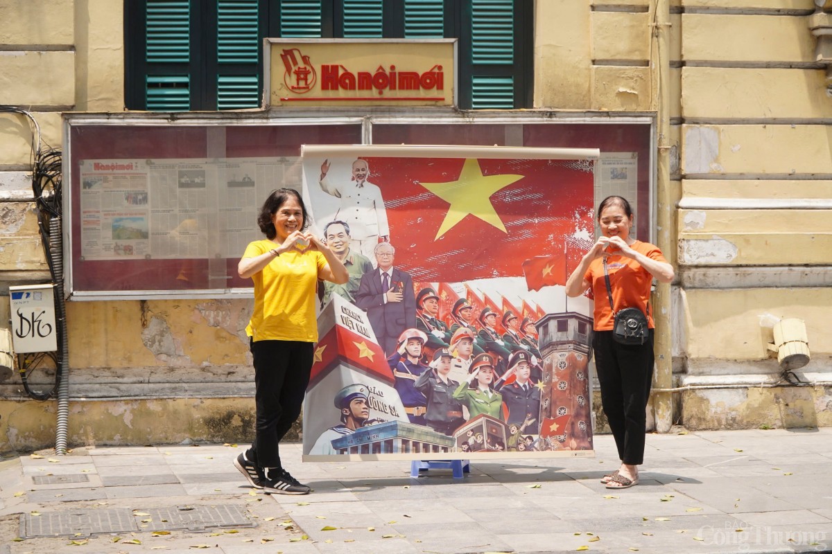 Không chỉ người trẻ, nhiều nhóm trung niên, thậm chí là cao tuổi cũng hòa vào không khí đó. Trước cửa trụ sở Báo Hànộimới, cô Thanh Nhã đang cùng bạn chụp những bức ảnh lưu niệm tại một địa điểm mang đậm dấu ấn của Hà Nội.