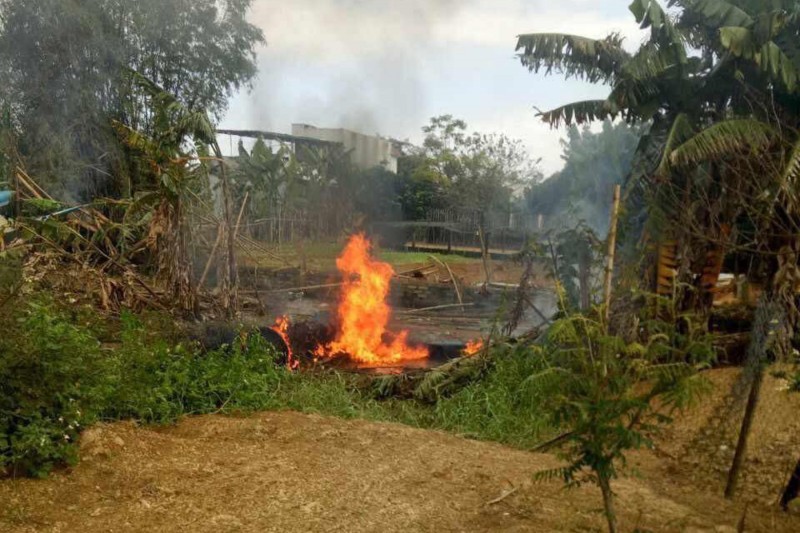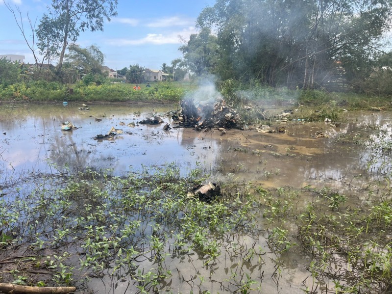 Anh Nguyễn Thành Cấp - một người dân sống tại địa bàn cho biết, khoảng hơn 11h, anh đang nằm trong nhà thì nghe một tiếng nổ lớn. Khi tới hiện trường thì thấy phần đầu máy bay bị cháy, cột khói bốc cao hàng chục mét. Máy bay rơi thành 2 phần cách nhau khoảng 100m. Trong đó, một phần máy bay rơi trúng nhà ông Nguyễn Thanh Chính làm hư hại một nửa bên trái nhà dưới, mái ngói bị văng ra ngoài.