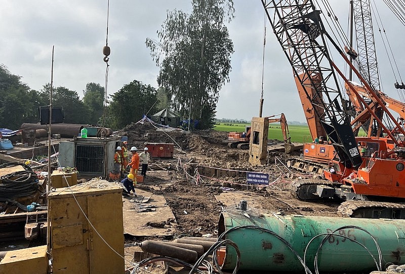 Đây là tình huống phát sinh và thiết bị trục trặc do chất liệu bơm lên đặc sánh. Tất cả những cái này đã được lực lượng ở công trình xử lý nhanh, dùng cát để san lấp, giữ ổn định xung quanh thành hố đang xử lý cứu hộ", ông Đoàn Tấn Bửu nói rõ.