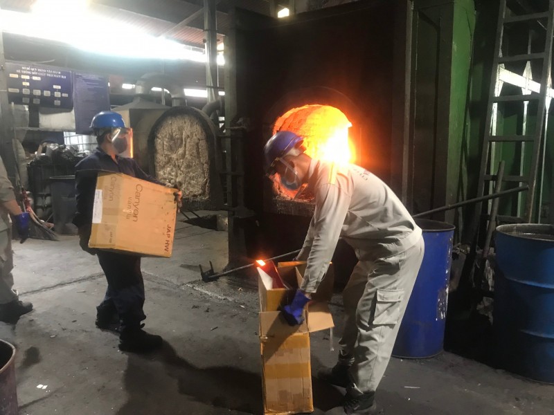 Cụ thể, vào ngày 18, 21 và 26/9/2023, tại Nhà máy xử lý của Công ty Cổ phần môi trường Việt Úc, địa chỉ: Lô B-B21, đường số 9, Khu công nghiệp Lê Minh Xuân, Huyện Bình Chánh, TP. Hồ Chí Minh, Cục Quản lý thị trường phối hợp với Cơ quan thường trực Ban chỉ đạo 389 TP. Hồ Chí Minh, Hiệp hội Thuốc lá Việt Nam (VTA), Chi cục Thi hành án Dân sự huyện Củ Chi, Chi cục Thi hành án Dân sự Quận Tân Phú và Đội Quản lý thị trường số 15 tiến hành tiêu hủy hàng hoá là thuốc lá điếu do nước ngoài sản xuất, nhập lậu gồm 9.150 bao các hiệu: 555, Jet, Hero, Esse Change, Scott, Mond, Marlbro, Captian Black, Zouk.