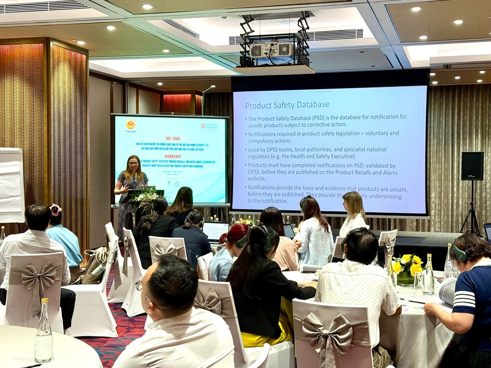 Từ phía đối tác, bà Jaipal Basi, Trưởng bộ phận hợp tác quốc tế Cục An toàn và Tiêu chuẩn sản phẩm Vương quốc Anh (OPSS), nhấn mạnh sự coi trọng hợp tác với Việt Nam, đồng thời chia sẻ những chiến lược mà Vương quốc Anh đang áp dụng để quản lý sản phẩm tiêu dùng: Xây dựng mạng lưới giám sát rộng khắp, thiết lập hệ thống cảnh báo sớm và đặc biệt là thúc đẩy sự tham gia chủ động của người tiêu dùng vào quá trình giám sát sản phẩm.