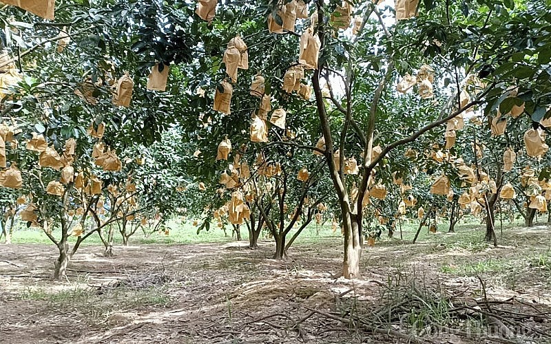 | Vườn bưởi Phúc Trạch của người dân H.Hương Khê trĩu quả dù gặp thời tiết nắng hạn |