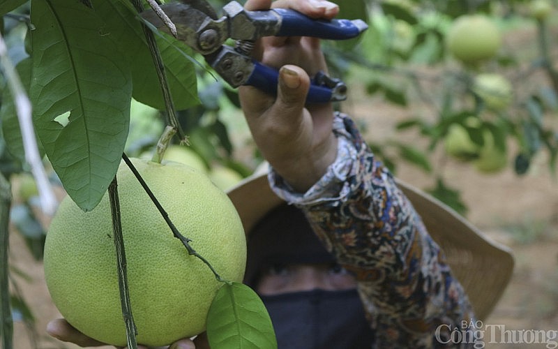 | Bưởi Phúc Trạch đã có chỉ dẫn địa lý nên được thương lái về tận vườn để thu mua |