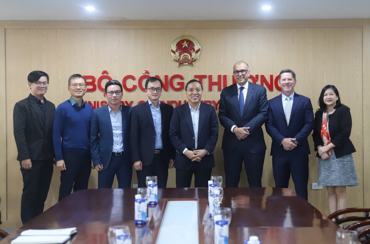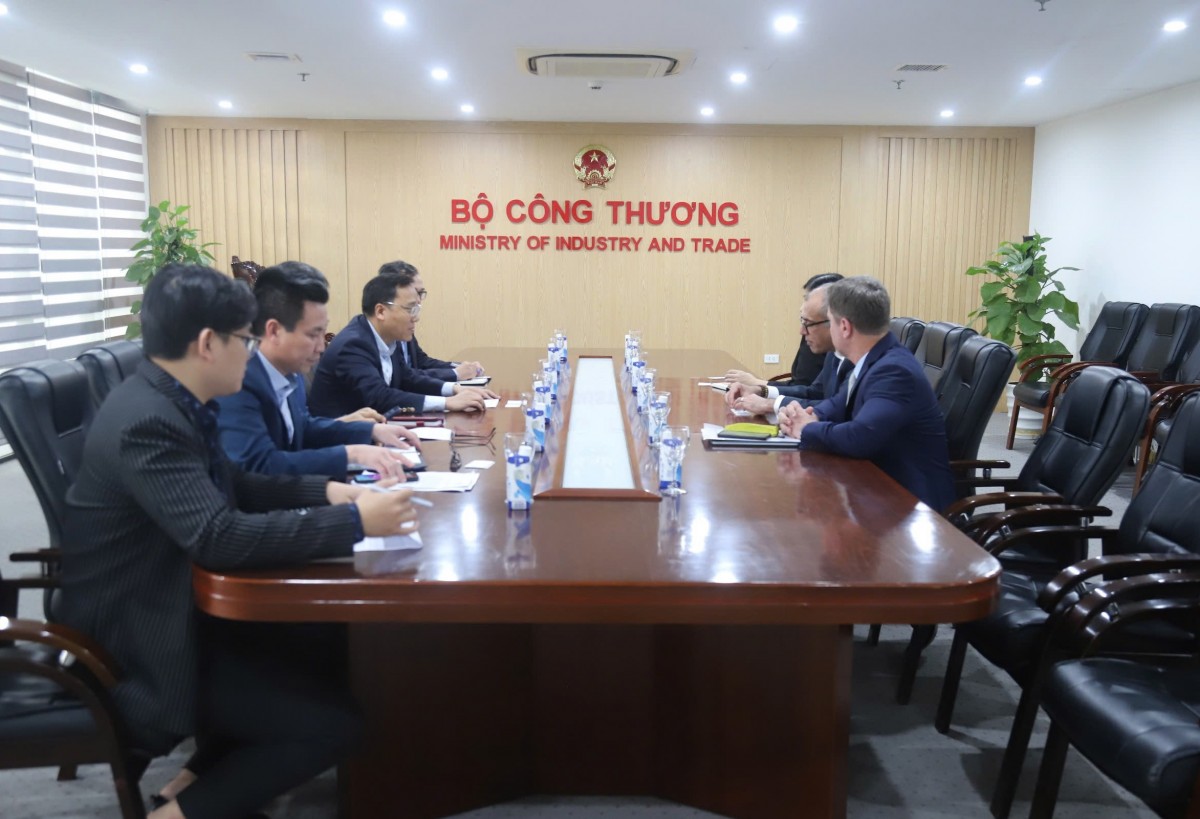Tham gia buổi làm việc có các đại diện của Vụ Phát triển thị trường nước ngoài, Cục Điện lực, Cục Đổi mới sáng tạo, Chuyển đổi xanh và Khuyến công.
