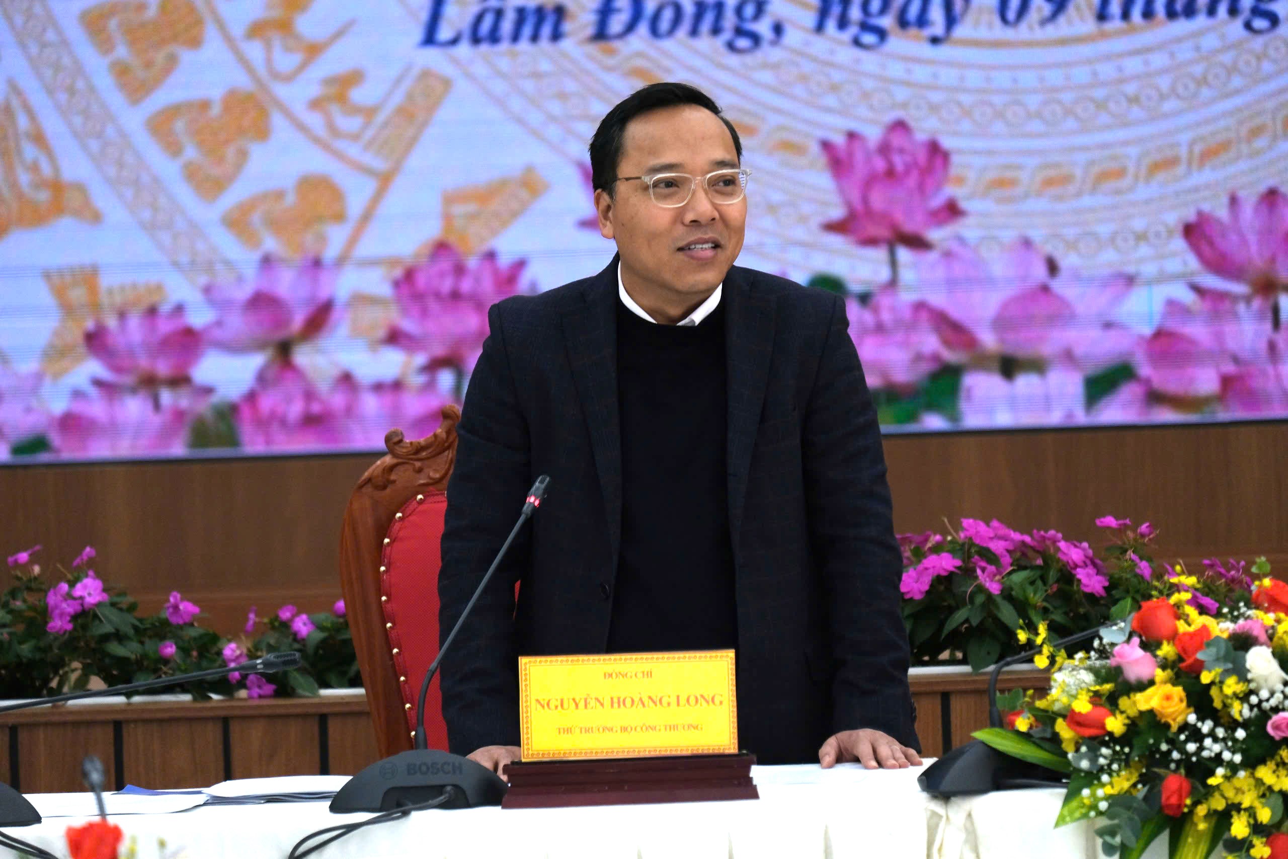 Thứ trưởng Bộ Công Thương Nguyễn Hoàng Long phát biểu tại buổi làm việc. Ảnh: Lê Sơn