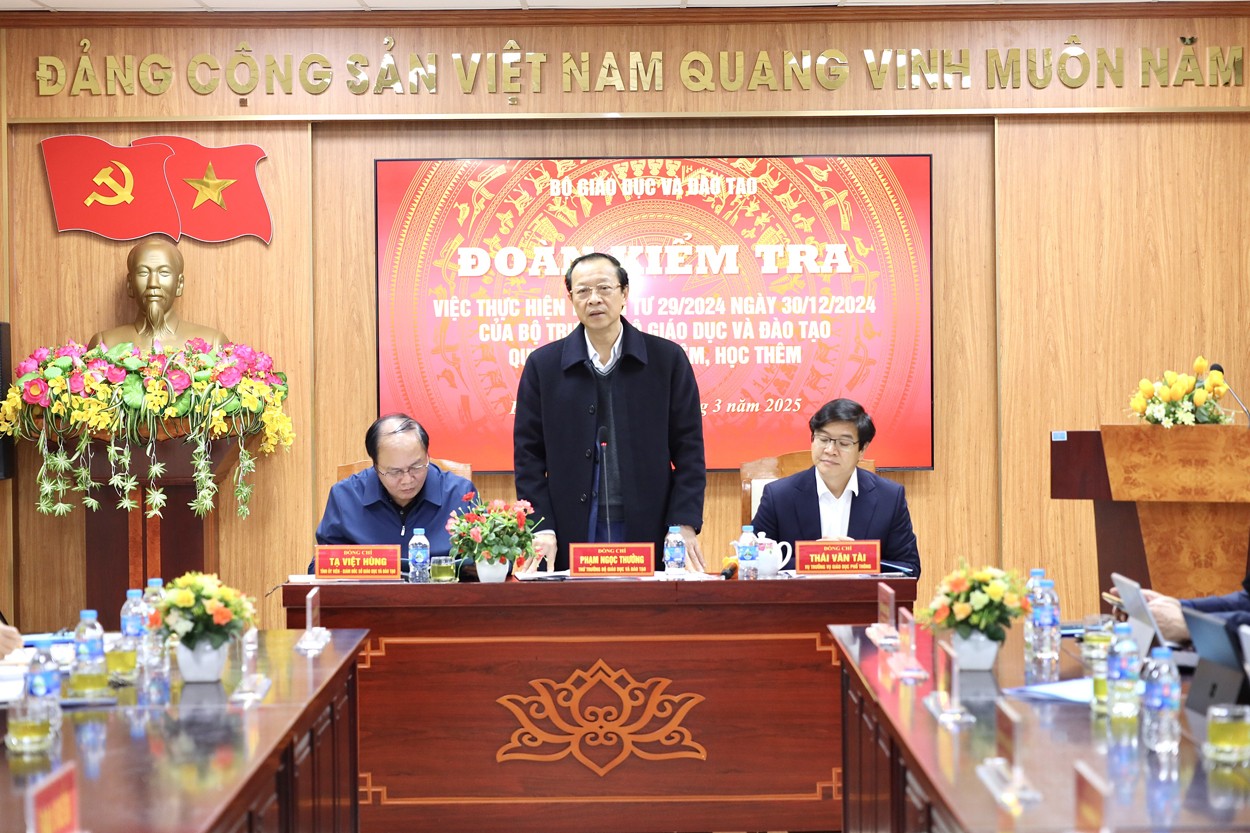 Tại buổi làm việc, nắm tình hình triển khai Thông tư 29/2024/TT-BGDĐT ngày 30/12/2024 quy định về dạy thêm, học thêm (Thông tư 29) trên địa bàn tỉnh Bắc Giang ngày 6/3/2025, Thứ trưởng Bộ Giáo dục và Đào tạo Phạm Ngọc Thưởng một lần nữa khẳng định, việc quản lý dạy thêm, học thêm là việc khó bởi lâu này đã trở thành mặc định.