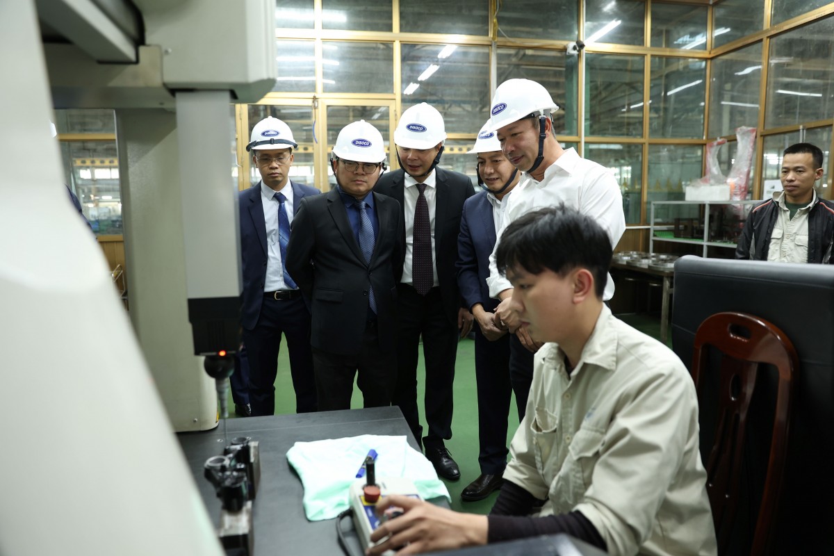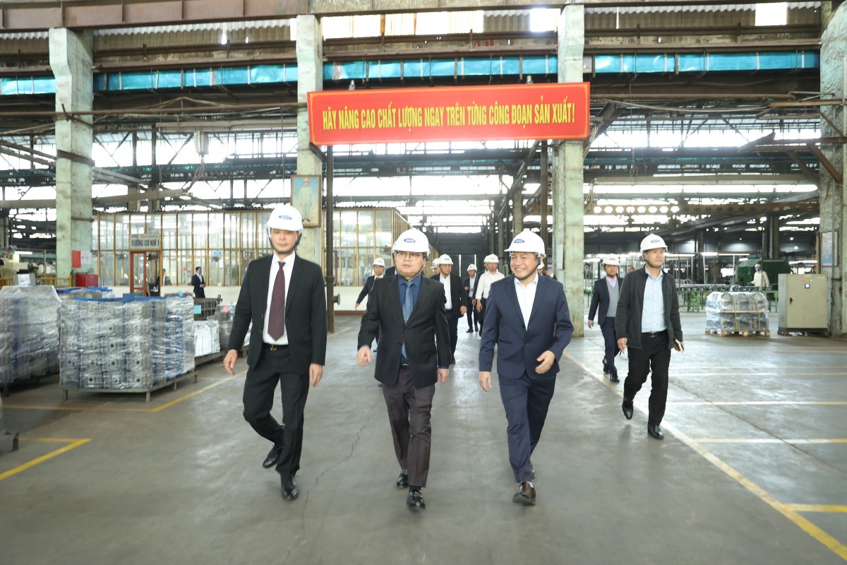 | Thứ trưởng tham quan nhà máy sản xuất của Công ty TNHH MTV Diesel Sông Công. Ảnh: Thanh Tâm |