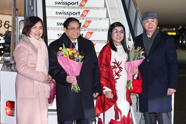 | Thủ tướng Chính phủ Phạm Minh Chính và Phu nhân tới Zurich, Thụy Sĩ. Ảnh: VGP/Nhật Bắc |