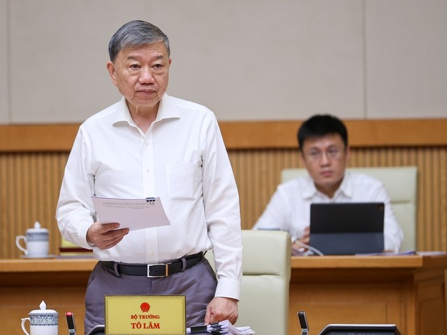 | Bộ trưởng Bộ Công an Tô Lâm phát biểu tại phiên họp - Ảnh: VGP/Nhật Bắc |