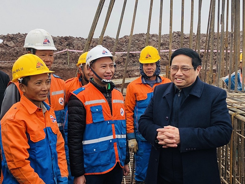 | Thủ tướng Chính phủ thăm, động viên lực lượng thi công đường dây 500kV mạch 3 hồi đầu năm (Ảnh Đình Dũng) |
