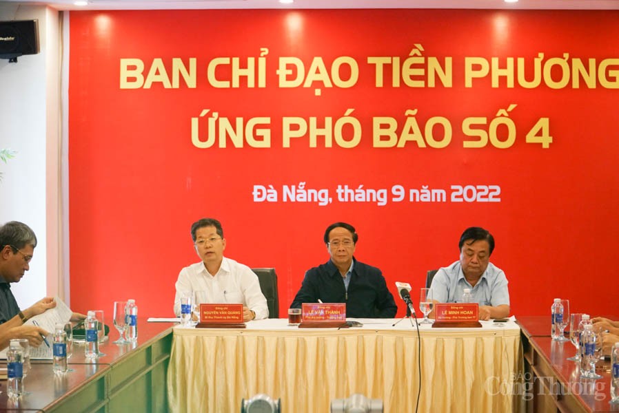 | Phó Thủ tướng Lê Văn Thành - Trưởng Ban chỉ đạo tiền phương ứng phó với bão số 4 chủ trì họp tại đầu cầu thành phố Đà Nẵng |