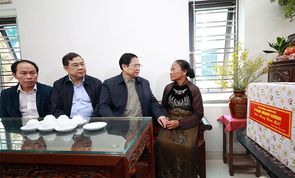| Thủ tướng Chính phủ Phạm Minh Chính đến thăm, chúc Tết gia đình liệt sĩ Nguyễn Đình Thiện. |