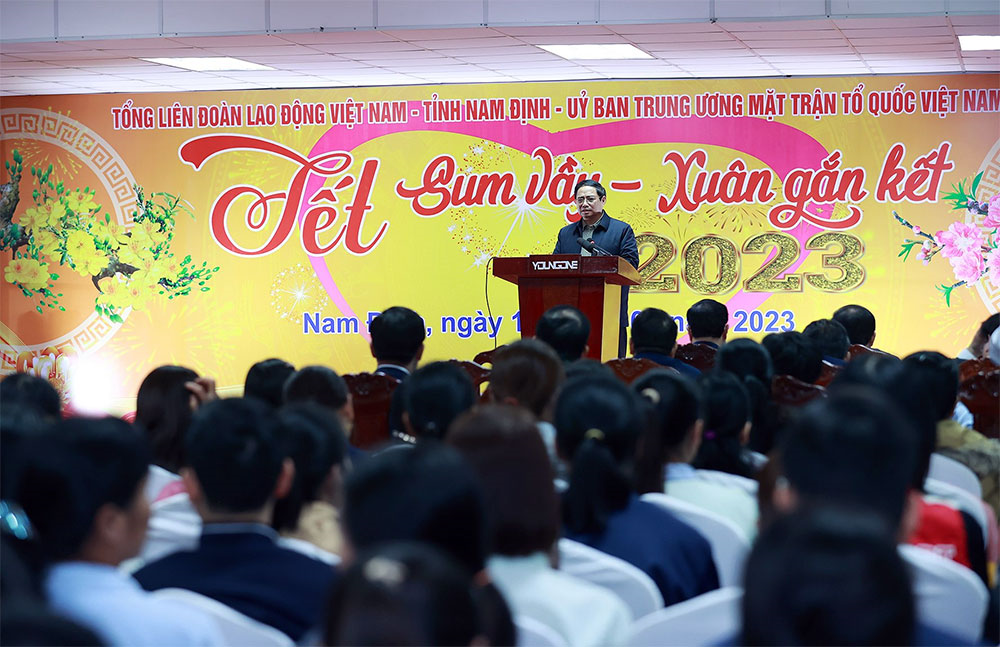 | Thủ tướng Chính phủ Phạm Minh Chính dự Chương trình “Tết sum vầy - Xuân gắn kết” với đoàn viên công đoàn, công nhân, người lao động và nhân dân tỉnh Nam Định. |