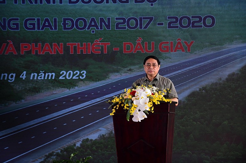 Thủ tướng Phạm Minh khẳng định, đối với cao tốc Mai Sơn - Quốc lộ 45 và Phan Thiết - Dầu Giây có vai trò quan trong trong việc kết nối vùng phát triển kinh tế xã hội của các tỉnh Đồng Nai, Bình Thuận, Thanh Hóa, Ninh Bình nói riêng, các địa phương của vùng cả cả nước nói chung.