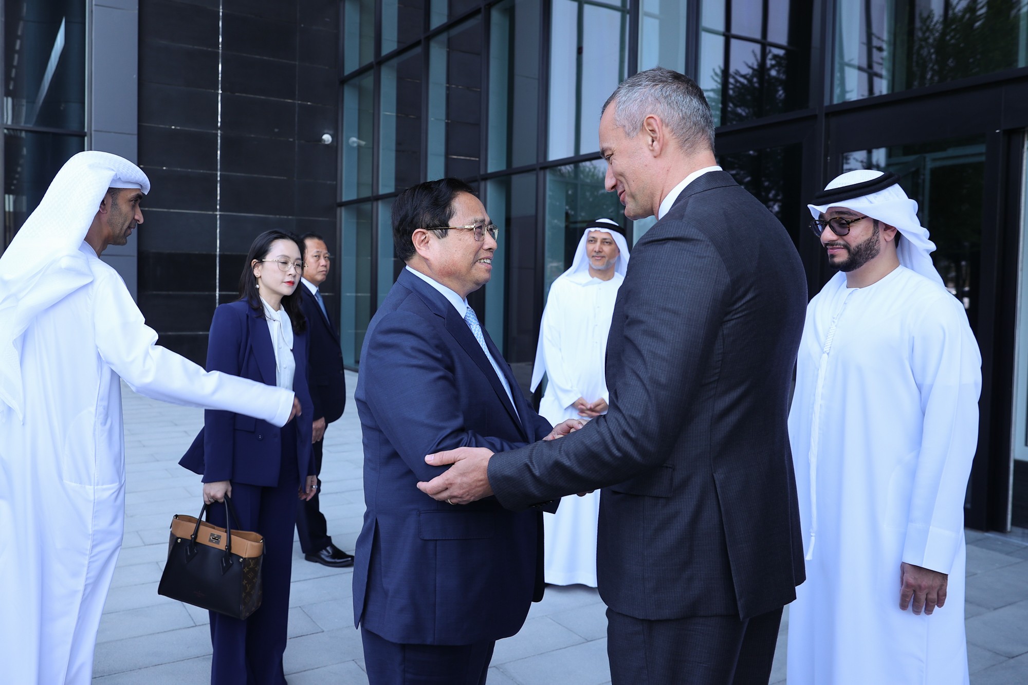| Giám đốc Học viện Ngoại giao Anwar Gargash nhiệt liệt chào đón Thủ tướng Phạm Minh Chính - Ảnh: VGP/Nhật Bắc |
