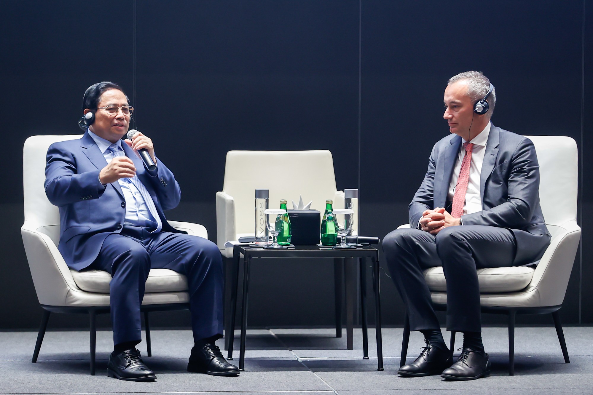 Chia sẻ với các đại biểu về những yếu tố nền tảng, quan điểm phát triển, thành tựu và định hướng phát triển của Việt Nam, Thủ tướng cho biết, trên cơ sở chủ nghĩa Mác-Lênin, tư tưởng Hồ Chí Minh, truyền thống văn hóa lịch sử hàng nghìn năm của dân tộc, vận dụng sáng tạo vào điều kiện, hoàn cảnh đất nước và xu thế, tình hình thế giới hiện nay, Việt Nam nhất quán tập trung xây dựng 3 yếu tố nền tảng chủ yếu: Xây dựng nền dân chủ xã hội chủ nghĩa; xây dựng Nhà nước pháp quyền xã hội chủ nghĩa; xây dựng nền kinh tế thị trường định hướng xã hội chủ nghĩa.