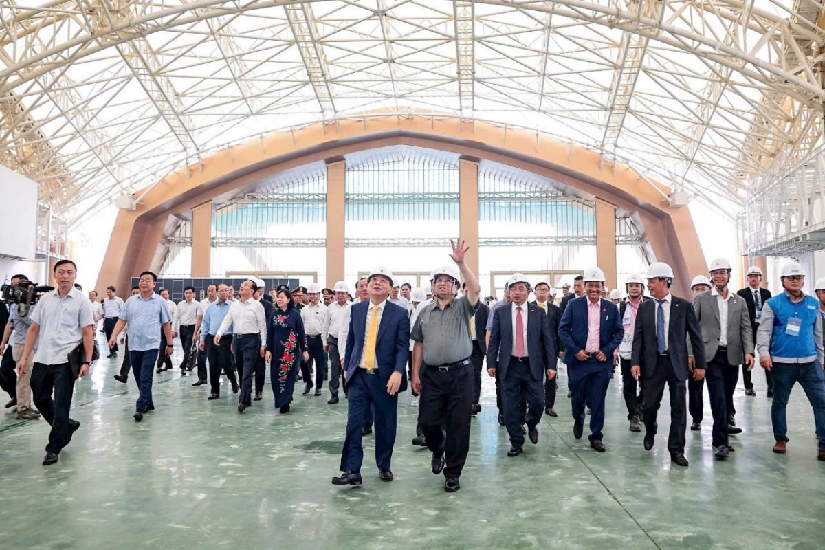 | Thủ tướng Phạm Minh Chính kiểm tra tiến độ xây dựng Trung tâm Hội chợ triển lãm quốc gia. Ảnh: VGP: Nhật Bắc |